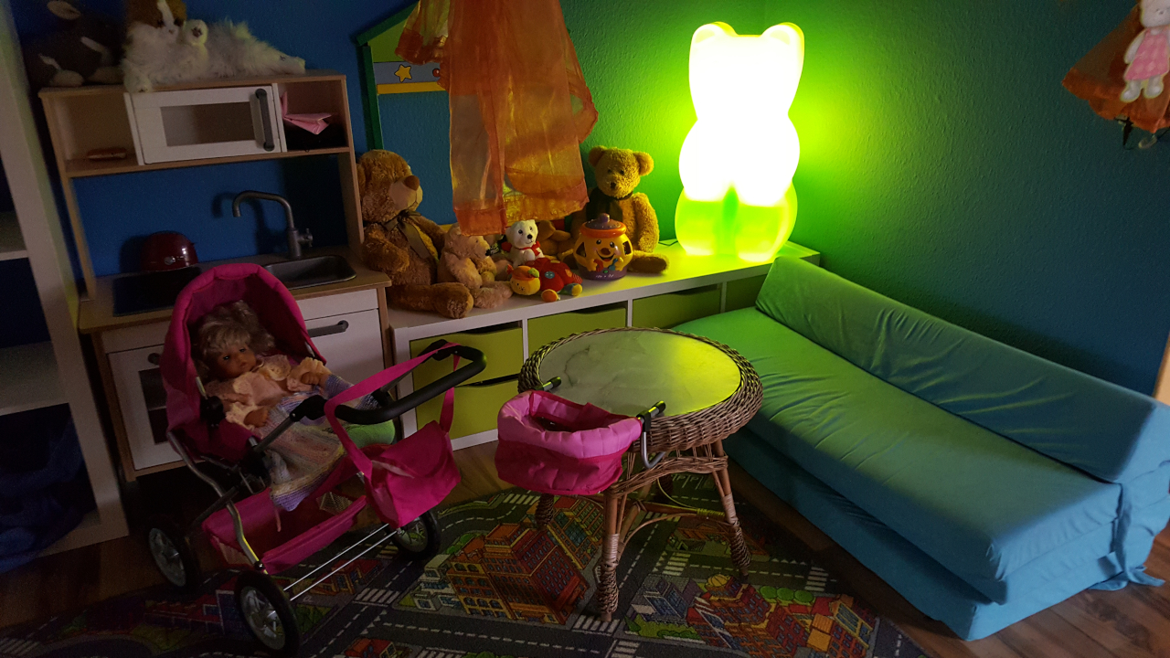 Meine Tagespflege verfügt über eine Nutzfläche von ca. 55 qm, und die Freispielfläche im Garten beträgt ca. 150 qm. Diese Flächen werden allein von den Kindern genutzt.